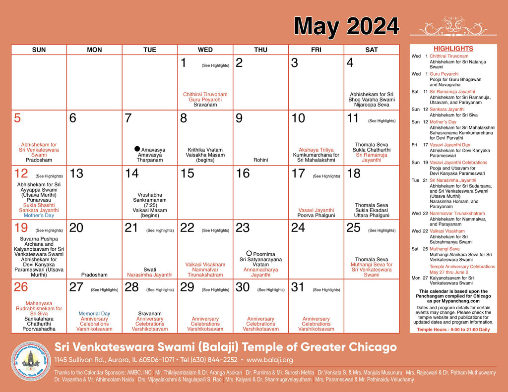 2025 CALENDAR โ SVS BALAJI TEMPLE